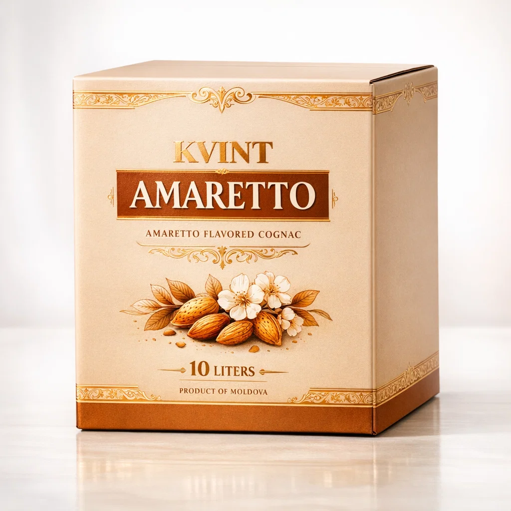 Kvint Amaretto — це гармонійне поєднання класичного молдовського коньяку та солодко-мигдального аромату, який дарує напою м’якість, глибину та приємний післясмак. Чудово підходить як для вживання в чистому вигляді, так і для коктейлів та десертних міксів.